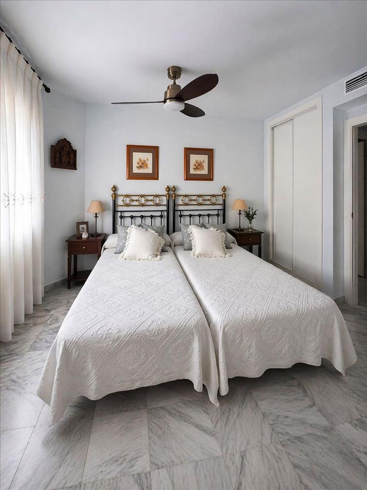 Az apartman 2 hálószoba és 2 fürdőszoba, világos és praktikus elrendezéssel. Keletre néző tájolása kellemes természetes fényt és kényelmes hőmérsékletet biztosít a nap folyamán.