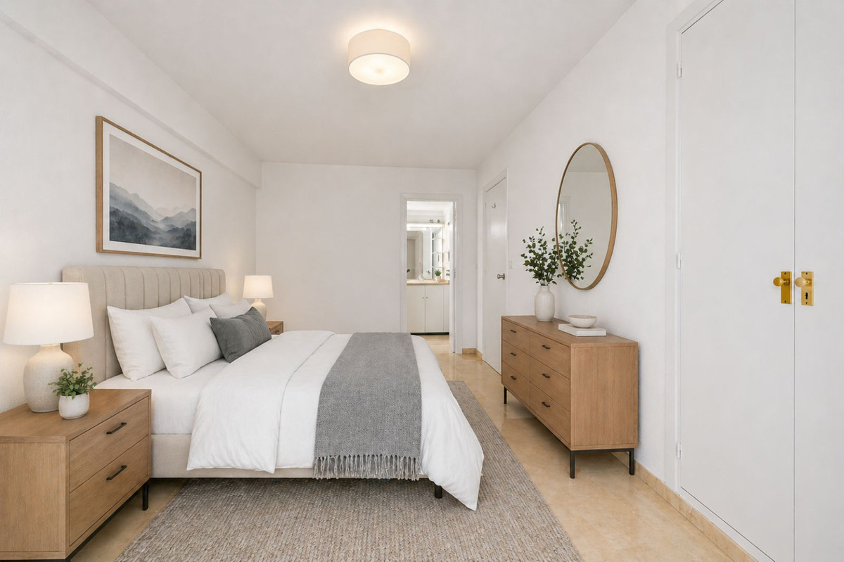 Napos és világos 112 m ² -es, sarokapartman, mindössze 200 méterre a strandtól és sétára minden szolgáltatás, étterem, szupermarketek és a közlekedés. Az ingatlan található a 2. emeleten lift, és ideális, mint egy állandó lakóhely, nyaraló vagy bérleti beruházás a Costa del Sol.