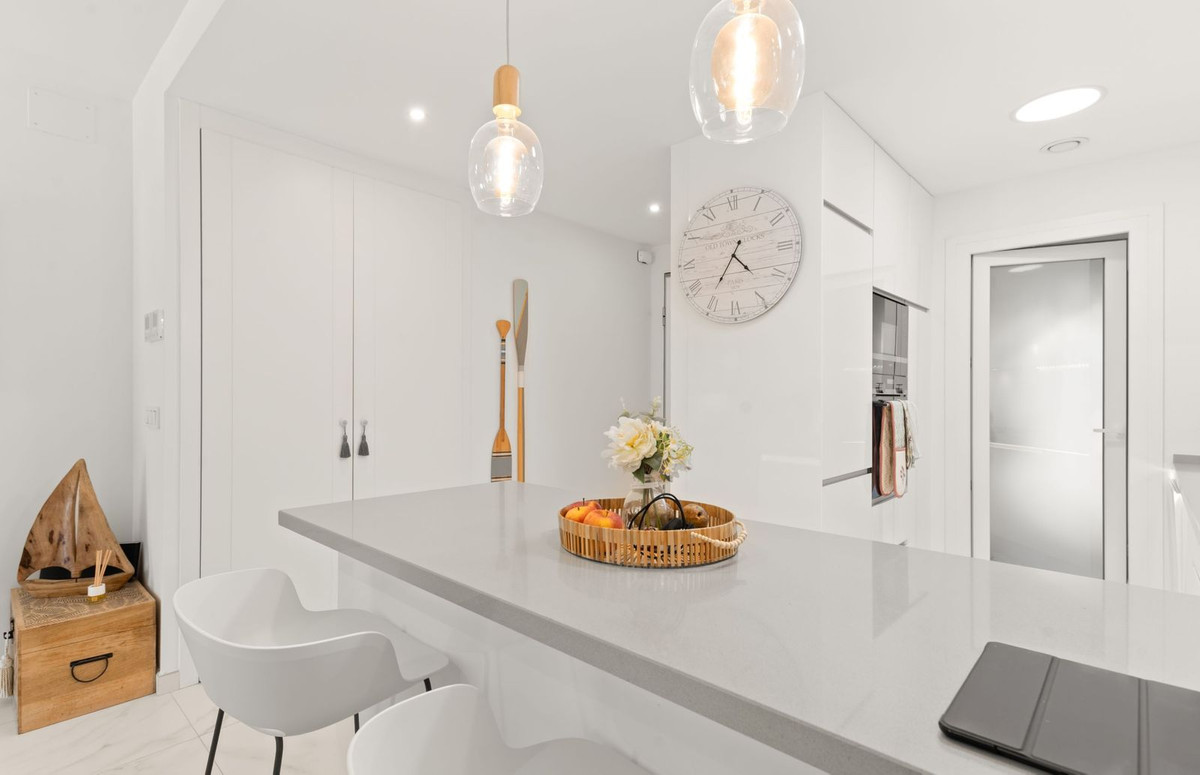Az ingatlan modern és funkcionális nyílt terű elrendezéssel rendelkezik, a konyha és a nappali kombinálásával. a teljesen felszerelt konyha közvetlen hozzáférést biztosít egy keleti fekvésű terasz, tökéletes élvezheti a napos reggelek.