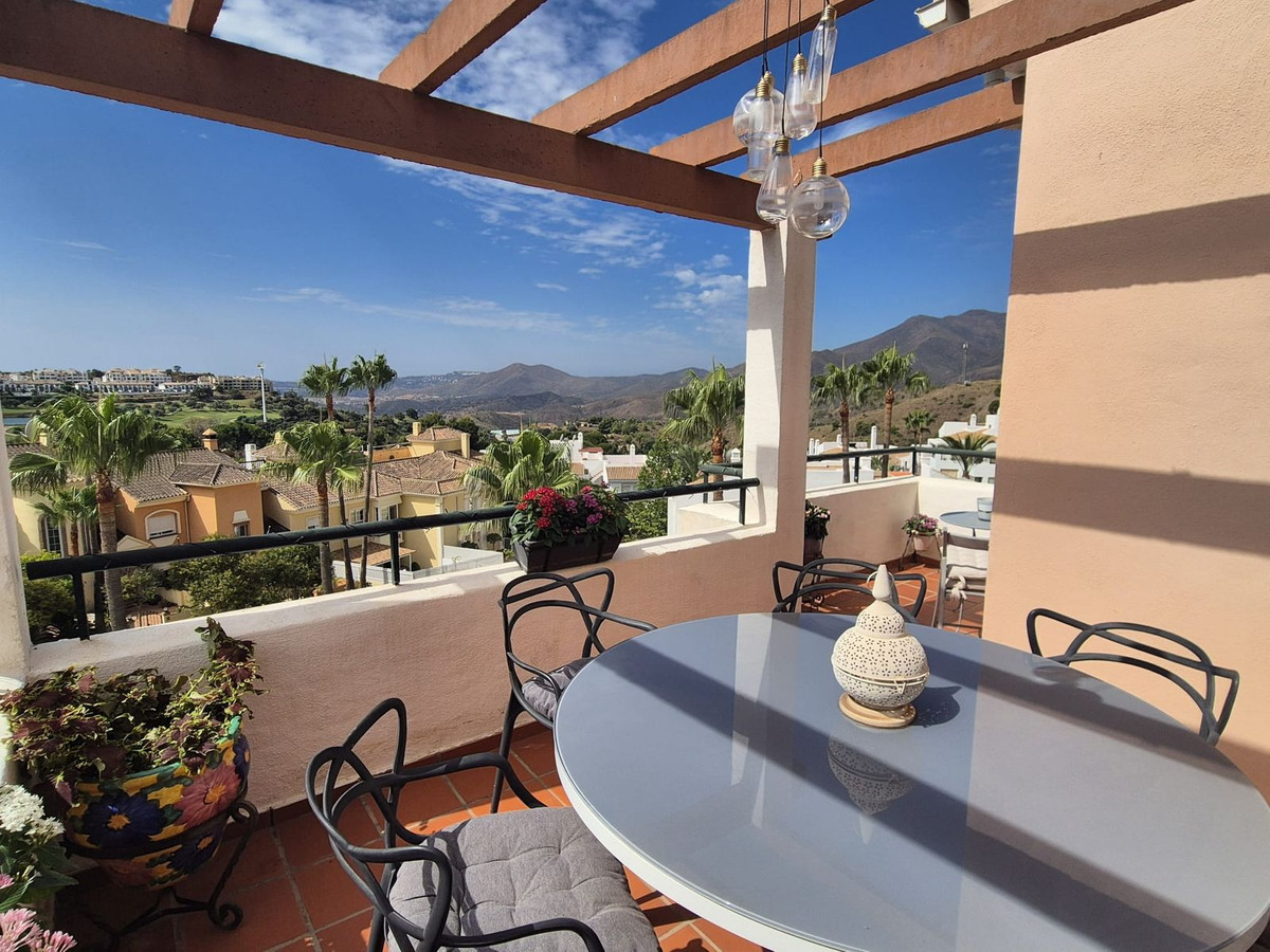 Fantasztikus sarok duplex penthouse lakás eladó Pueblo Andaluz csodálatos kilátással Alhaurín Golf és környező hegyek.