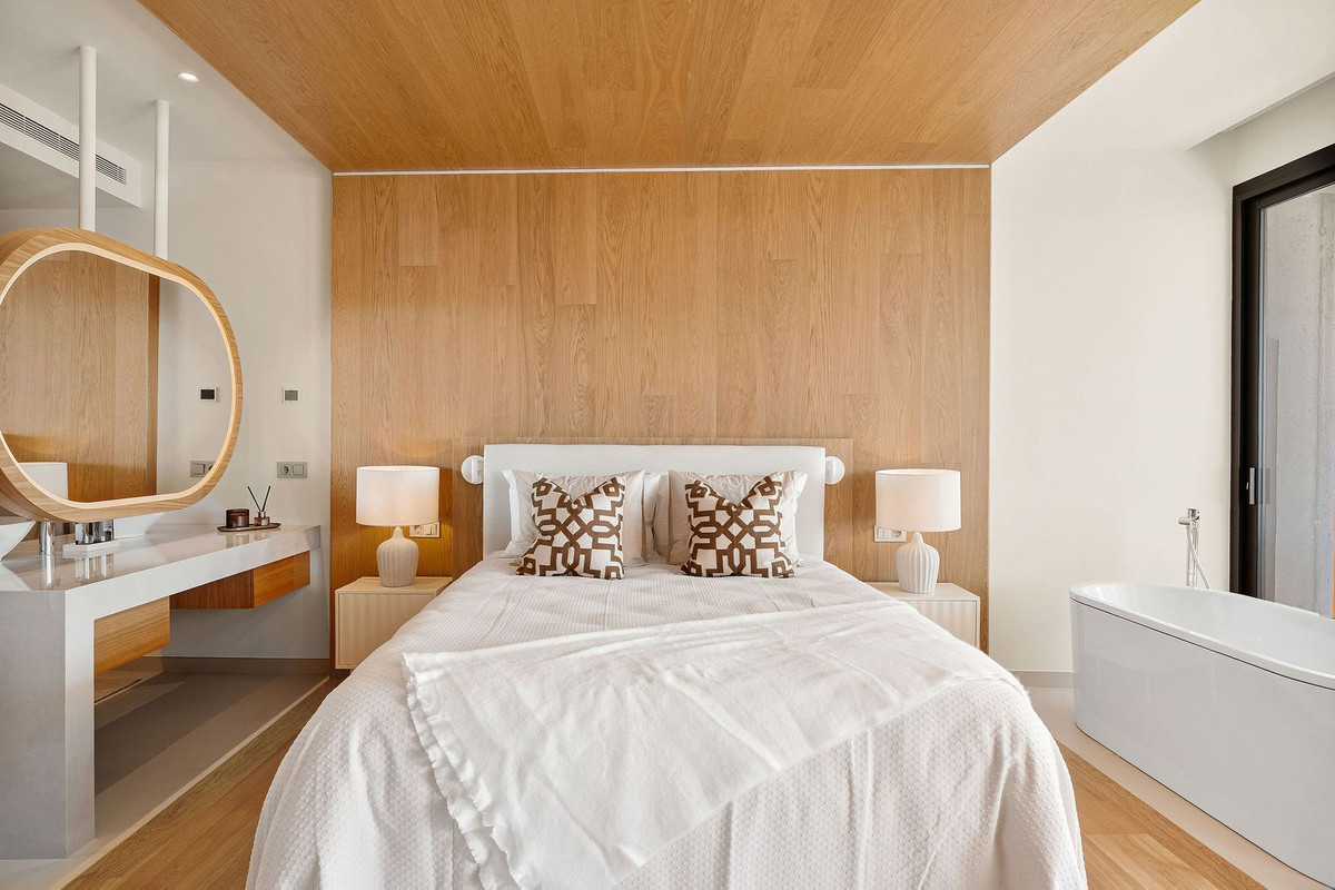 Floor-to-plafon ablakok árasztják el a teret természetes fénnyel, és a keret lélegzetelállító panorámás kilátás, így zökkenőmentes kapcsolat a beltéri élet és a környező táj. a belső terek a legmagasabb színvonalon készülnek, prémium anyagokkal, stílusos részletességgel és modern, minimalista érzéssel.