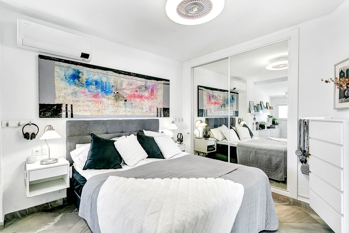 Ez az 1 hálószobás ékkő a 14. emeleten bőkezű helyet kínál, egy fürdõszobát, egy vendégWC-t és egy mesés teraszt, amely ínyenc élményekre alkalmas szabadtéri konyhával rendelkezik. Élvezze panorámás kilátás nyílik a város és a Fuengirola kikötő, elérte a lift a 13. emeletre, valamint egy rövid lépcső mászni a paradicsomba. 70 M ² -es nappali és terasz körülbelül 26 m ² -es.