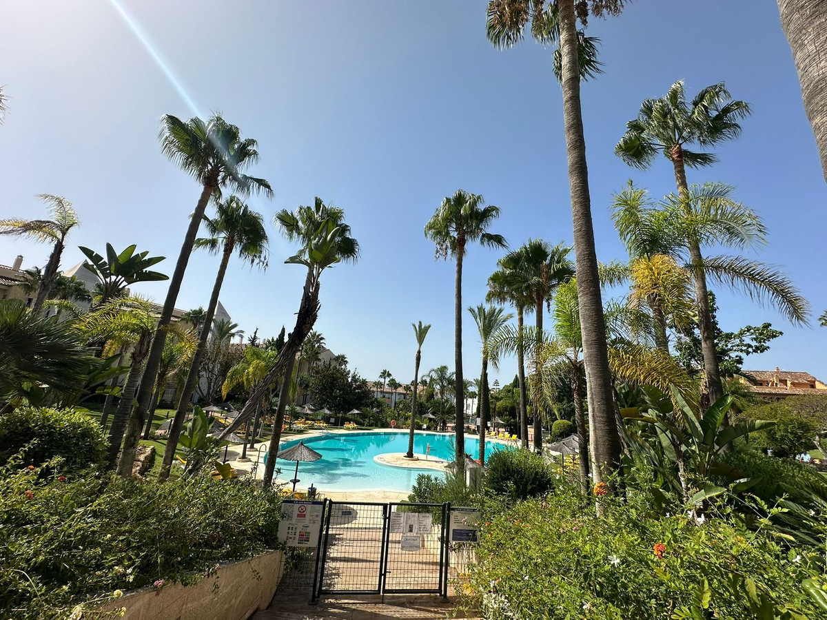 Ez a gyönyörű földszinti apartman 3 tágas hálószoba és 2 fürdőszoba, egy elegáns nyitott-terv konyha, és egy benne parkoló. Bahía de Marbellában található, a ház természetes fénnyel van megtöltve, és kilátással van a buja trópusi kertekre, a közösségi medencére és az evezős teniszpályára.