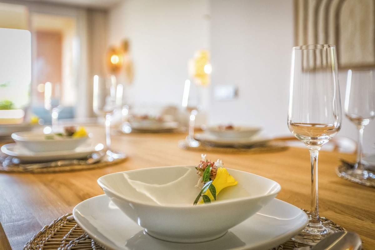 Benned egy világos nappali nyílik egy 57 m ² -es részben fedett terasz, luxus konyha, és egy külön közüzemi szoba. Van két fürdőszoba, egy lakosztály, és két jó hálószoba. a saját teraszról a fő úszómedencéhez néz.