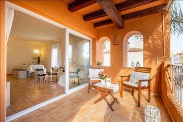 Amikor belépsz, beborítja a falak melege, rusztikus stucco-ba öltözve, és kitárulkozó fa gerendákkal, hozzáadva ezt a vizuális nemességet az otthonok lélekkel. a nagy nappali-étkező megnyílik egy terasz keretezett hagyományos ívek, a tökéletes hely a reggeli kávé. Innen, az élmény teljes: nem csak érzi a nyugodt impulzus a falu, de akkor is élvezni oldalsó kilátás nyílik a tengerre, állandó emlékeztető, hogy a Földközi-tenger csak néhány lépésre van.