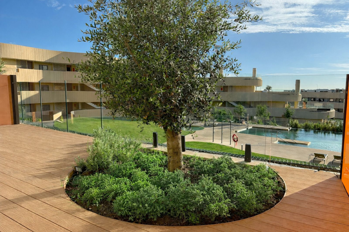 A kibővített lakóhely természetes módon egy teljes magasságú üveges oldalsó terasz felé áramlik, amely több szögből nyitott mediterrán kilátást kínál, és kivételes beltéri-szabadtéri élményt teremt.