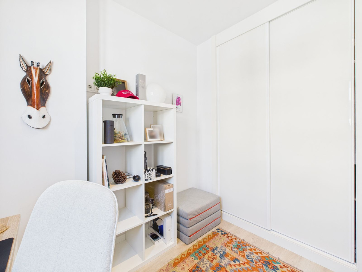 Az ingatlan két szobával rendelkezik, beépített ruhásszekrényekkel, köztük saját fürdőszobával.