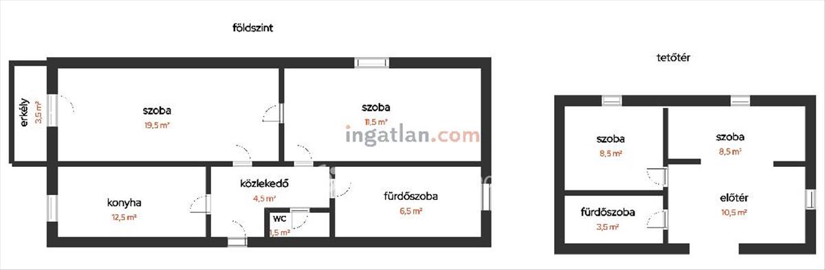 A 87 m2-es ingatlan tetőtér beépítésű, amelyből 56 m2 a lenti rész, a tetőtér 31 m2 nagyságú.