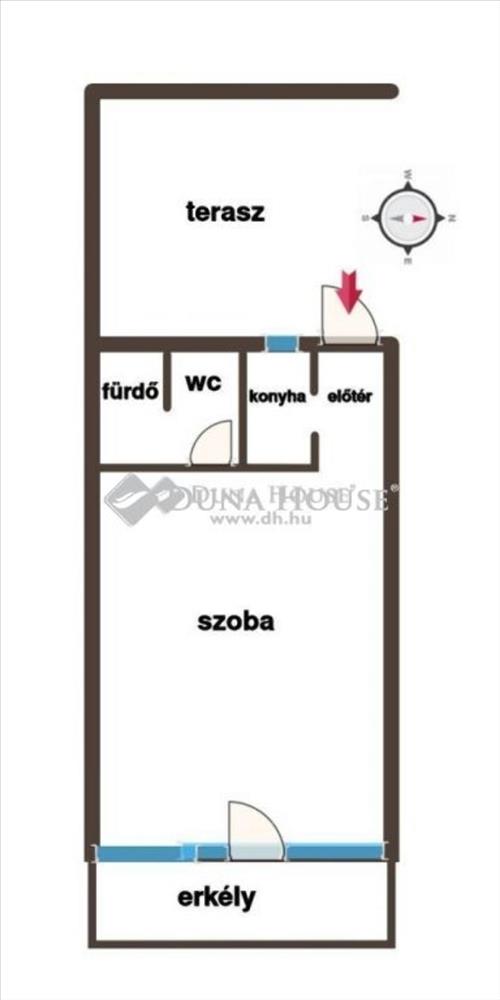 - egy szoba, fürdő+wc, főzőfülke, előszoba, erkély beosztású