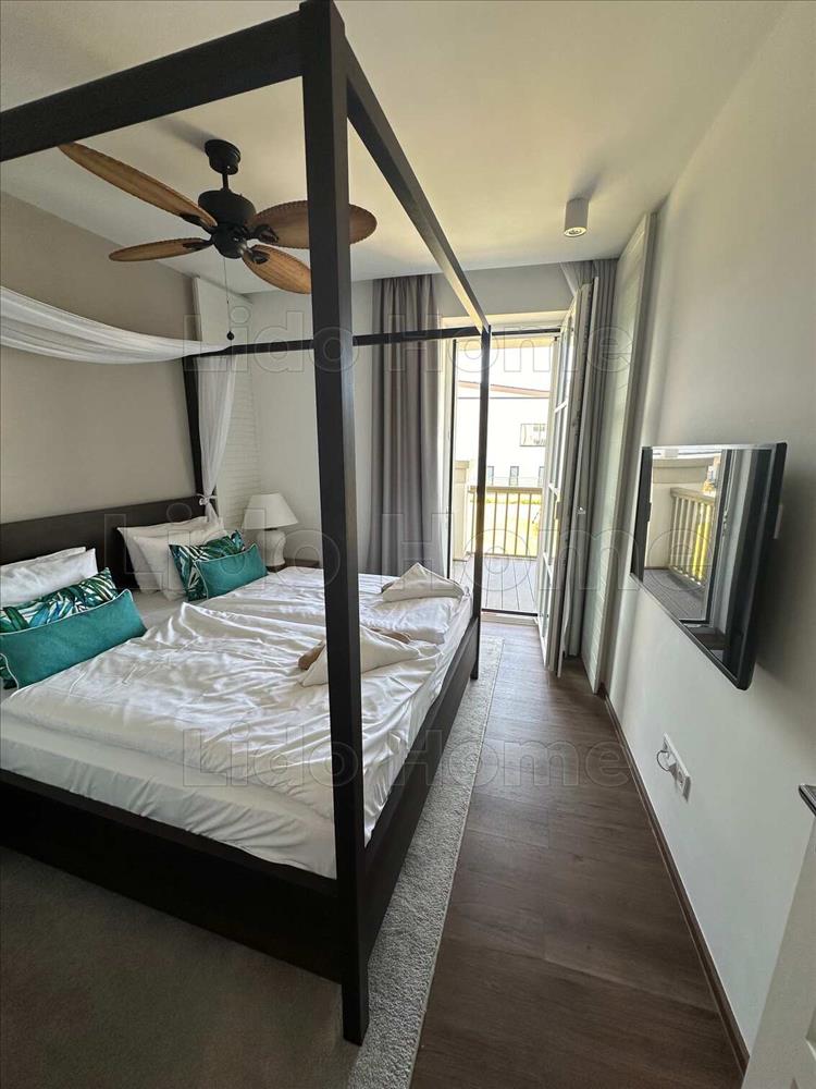 -A modern falfűtéssel rendelkező okosotthon belső tereit a karibi stílusjegyek uralják, összhangban a társasház közös tereivel és parkosított környezetével.