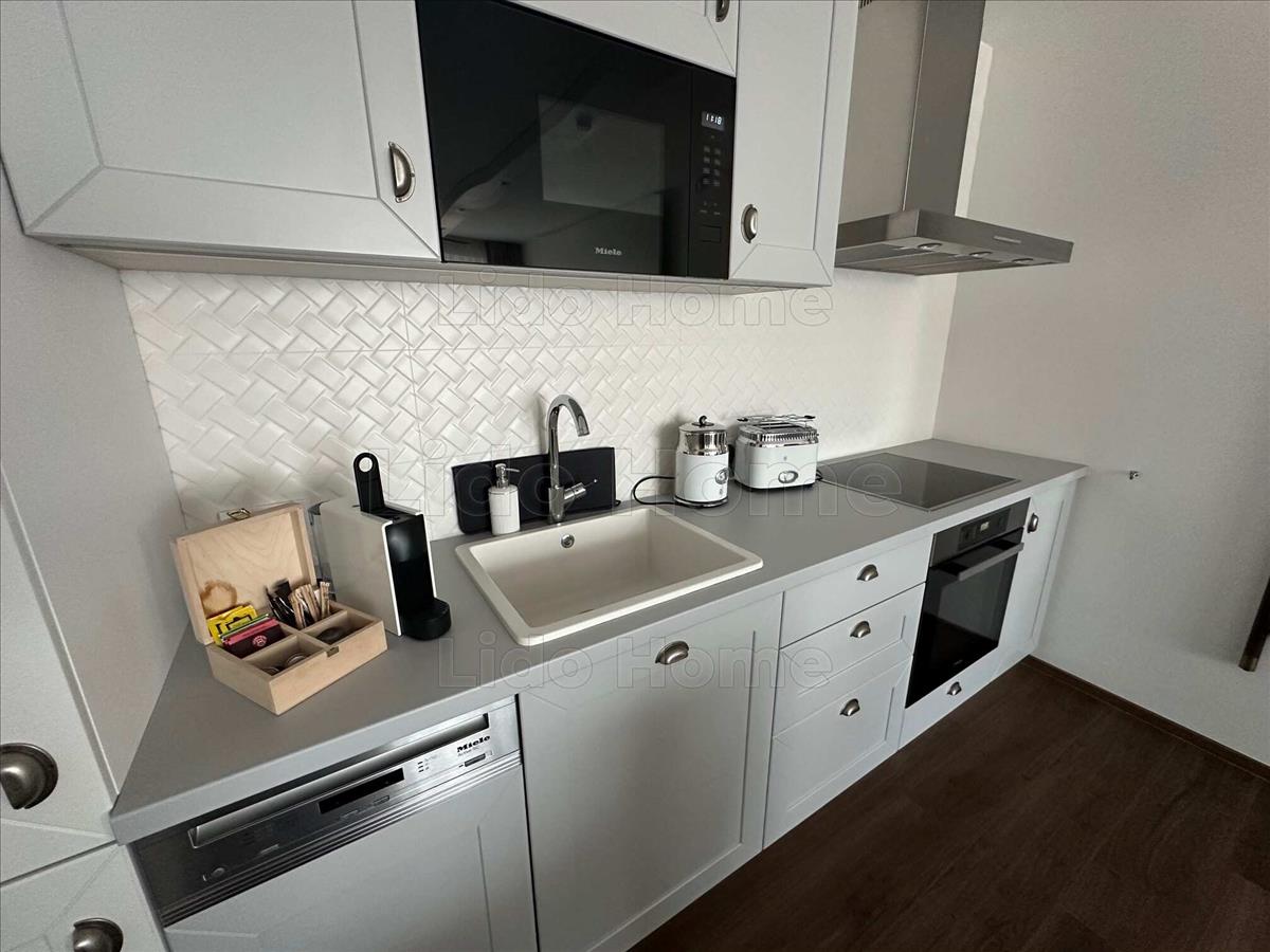 -A kényelmet az igényesen összeválogatott bútorok és kiegészítők, valamint Miele háztartási gépek (hűtőgép, mosogatógép, sütő, főzőlap, szagelszívó, mosó- és szárítógép) biztosítják.