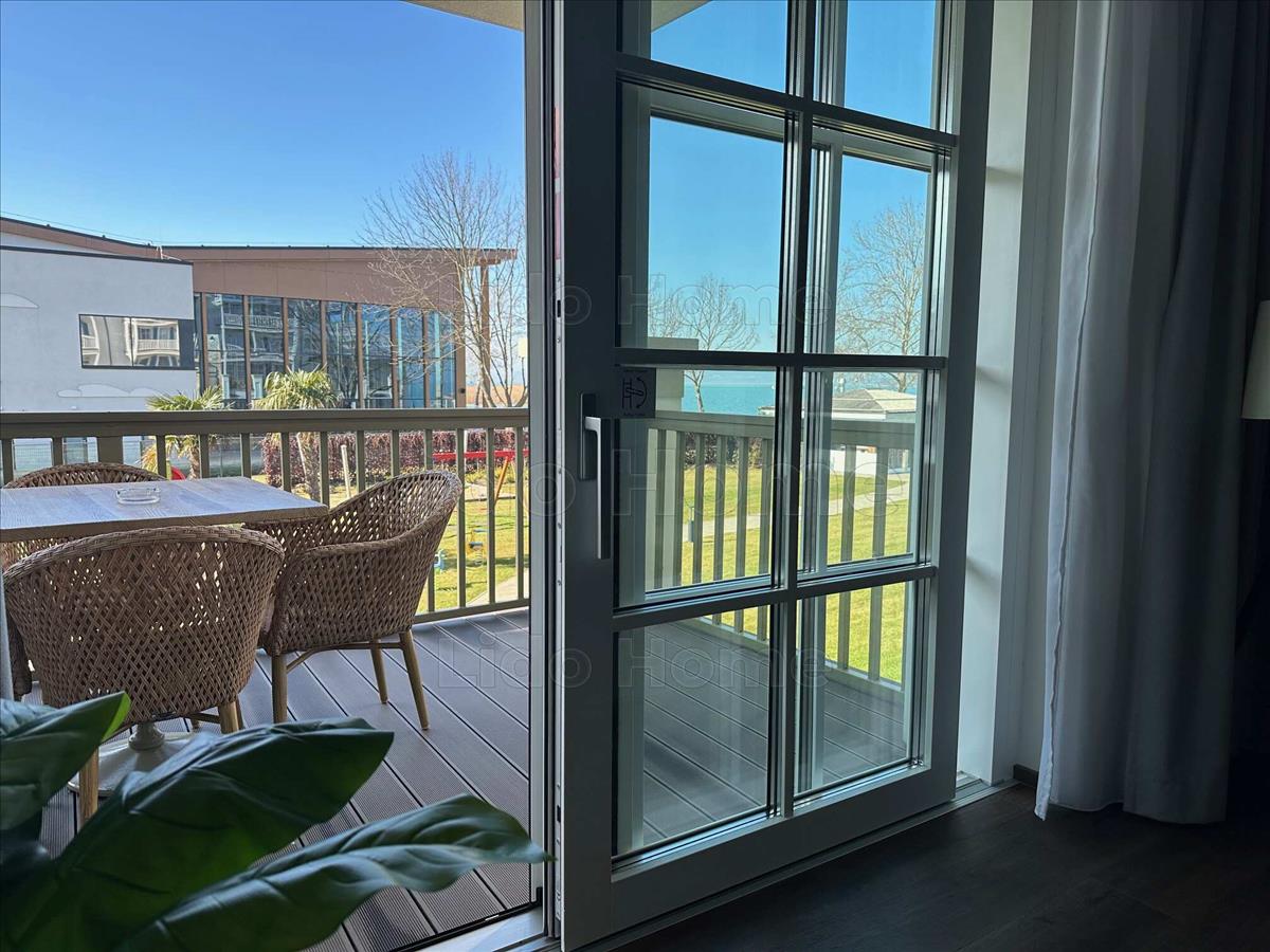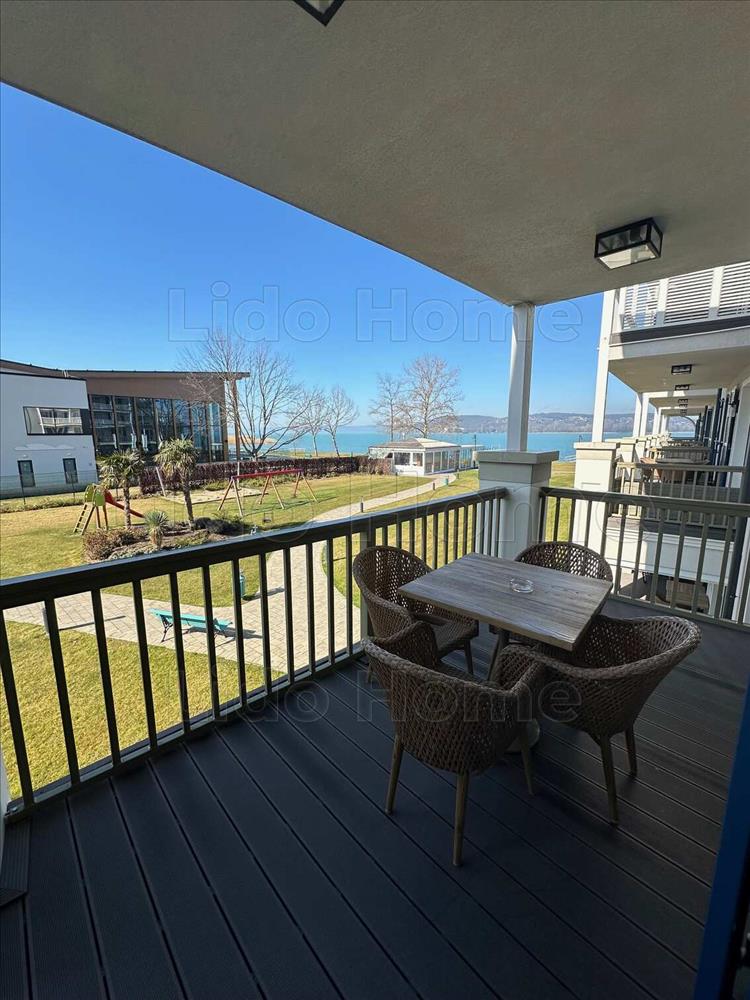 -A lakáshoz örökhasználatú tóparti napozóhely tartozik, napernyővel és napozó ágyakkal.