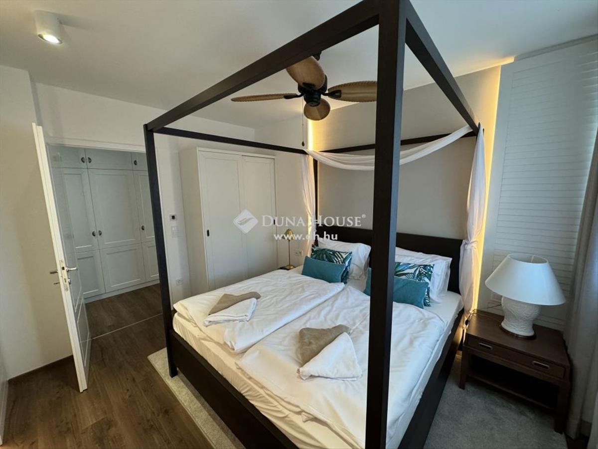 Eladó panorámás luxusapartman a BalaLake Resort-ban! a BalaLake egy igazi kuriózum a Balaton partján! Budapesttől alig több mint egy óra alatt elérhető ez az egyedi szolgáltatásokat biztosító luxus apartmanház. Közvetlen vízparton helyezkedik el, a Tihanyi félszigettel szemben, saját stranddal, parti bárral. a szomszéd komplexum a Balaland egy a 80 nap alatt a Föld körül Willy Foggal tematikájú, egész éves nyitva tartású családi élménypark és wellness, melynek szolgáltatásait az apartman tulajdonosok is élvezhetik. Ehhez kapcsolódik egy szálloda, melyben étterem is található. a Szálloda szolgáltatásait, szintén a tulajdonosok szolgálatába állítva, akár a szobaszervíz, takarítás, laundry szolgáltatás, portaszolgálat is igénybe vehető. Itt az egész család megtalálja a neki való programot, kényelmet, kikapcsolódást. Ha esetleg befektetésben gondolkodna, annak is ideális, hisz amikor nem Ön használja, akár ki is adhatja, helyi managment cég kezeli, működteti a rövidtávú kiadást. a 2. emeleti apartman 88m2-es, két terasszal rendelkező, amerikai konyhás nappali, plusz két hálós, teljesen bútorozott és gépesített. a lakáshoz tartozik egy teremgarázshely, és egy tároló is és ha ez nem lenne elég, egy saját tulajdonú partszakasz is, két napággyal, napernyővel, amit csak a tulajdonos használhat! Jöjjön el, és nézze meg ezt a minden képzeletet felülmúló Balaton parti ingatlant! ! 4! (Az ingatlan cég tulajdonában van, az ár bruttó ár)A Duna House teljes kínálatával kapcsolatban forduljanak hozzám bizalommal!
