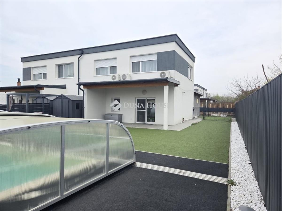 Szászberken saját medencés, kertkapcsolatos, 153 nm -es társasházi lakás eladóSzászberken, csendes, rendezett környezetben, 4 lakásos lakóparkban kínálunk megvételre egy 153 nm -es, kétszintes, kertkapcsolatos társasházi lakást, amely külön bejárattal, teljesen elszeparált, saját használatú udvarrésszel rendelkezik. Az ingatlan kialakítása praktikus, tágas életterekkel:Földszint:világos nappalitágas konyha-étkező, modern, magas fényű konyhabútorralbeépített, minőségi konyhai gépek15 nm -es fedett teraszkapcsolatzuhanyzós fürdőszoba + külön WCpadlófűtésEmelet:3 külön nyíló hálószobafürdőszoba WC-vel, sarokkáddalgáz-cirko fűtésrendszerTelek és udvar:kb. 500 Nm-es, kizárólagosan használt udvarrészkutyabarát műfüves borításfedett gépkocsibeállókerti tárolókerti csapudvari beállóKiemelt extrák:hőszivattyúval fűthető, sós vizes medence, fedett kivitelmasszírozó funkció és tusolócsúszásgátló burkolat a medence körülaz ingatlanban ipari áramminden szobában hűtő-fűtő klímaaszfaltozott magánút visz az utcától egészen az elektromos kapuigA társasház kialakítása lehetővé teszi a zavartalan, privát életvitelt, mivel a lakások teljesen elkülönítettek, kerítéssel leválasztott udvarrészekkel rendelkeznek. Elhelyezkedés:Szászberek Szolnoktól kb. 18 Perc autóútra található, a 32-es út mellett, az M4-es felhajtó közelében, így Budapest kb. 1 Órán belül elérhető. a pici településen családias, kertvárosi környezetben elhelyezkedő óvoda, a Kohner-kastélyban helyet kapott Kolping Katolikus Általános Iskola, házi orvosi rendelő, gyógyszertár is található. 2019-Ben adták át a település Sportcsarnokát, mely megyei színvonalú, több száz milliós állami pályázatból épült. Elsősorban labdarúgó edzéseknek ad otthont, de más sportágak, közösségi események helyszínéül is szolgál. a település hiába helyezkedik el főút mellett, mégsincs átmenő forgalma. Kifejezetten biztonságos, nyugodt, összetartó település. Olyan családoknak kivételes lehetőség ez az ingatlan akik nem vágyják a város zaját a mindennapokban, de mégis elérhető közelségben szeretnének maradni nagyobb bevásárló központoktól, kultúrális létesítményektől. Amennyiben hírdetésem felkeltette az érdeklődését, forduljon hozzám bizalommal! FIX 3% lakáshitelre megvehető