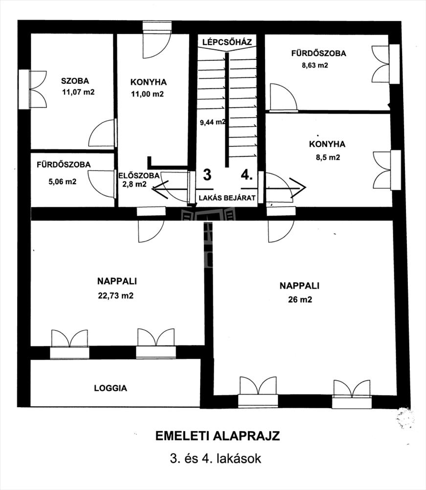 Emeleten a 3. Számú lakás 53 m2 + 8 m2 loggia, 2 szobás 58 millió Ft