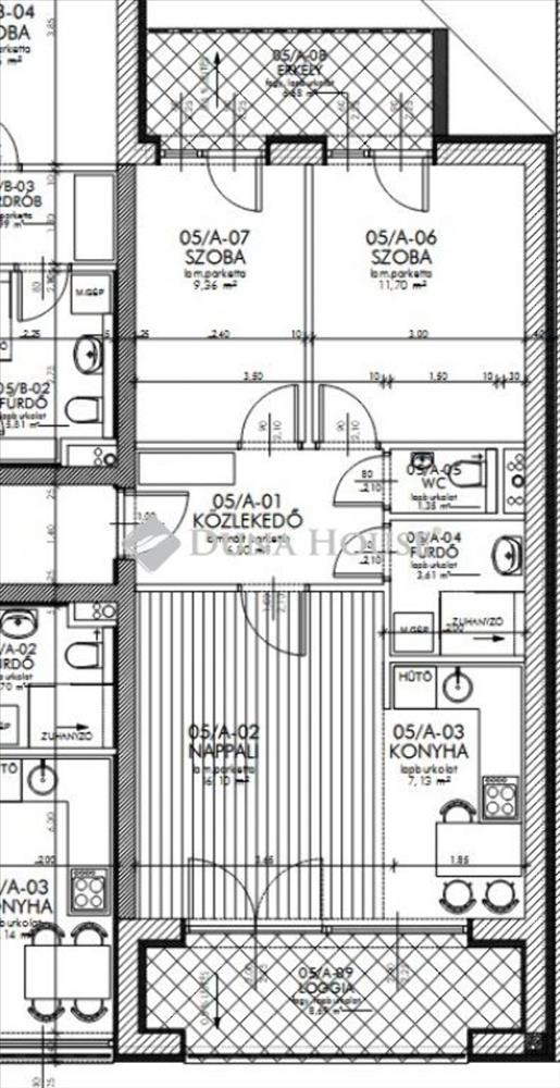 A legtöbb lakáshoz tartozik erkély vagy loggia.