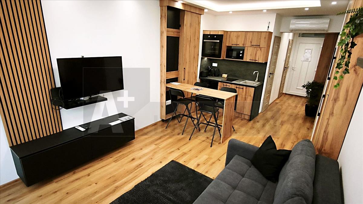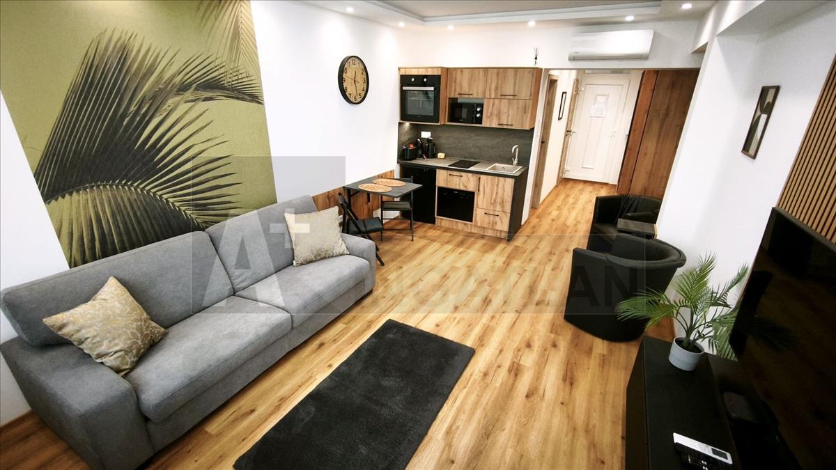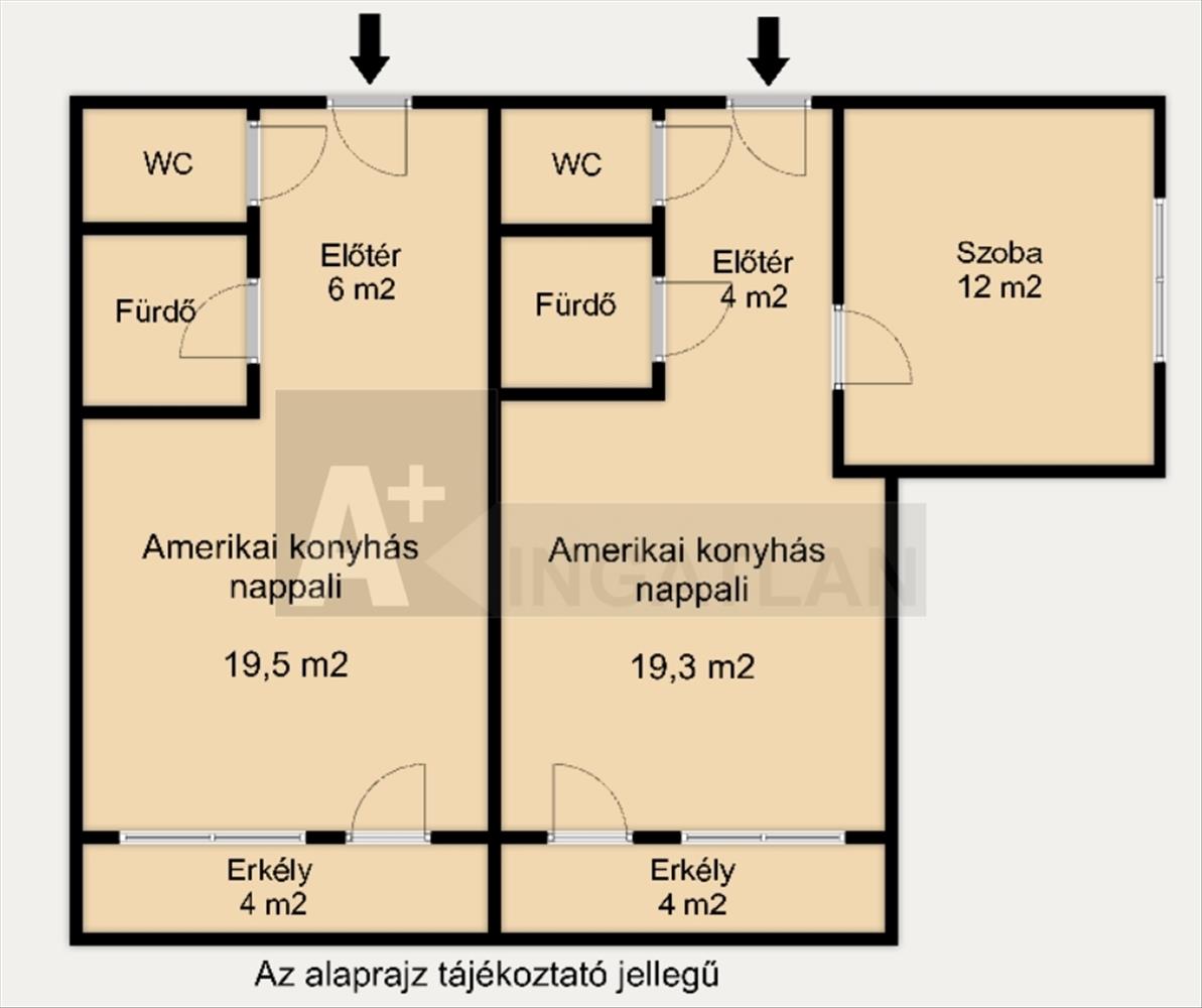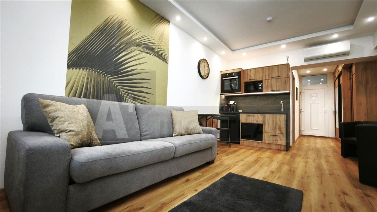 - 33 m²-es apartman: amerikai konyhás nappali + külön fürdő és wc + erkély