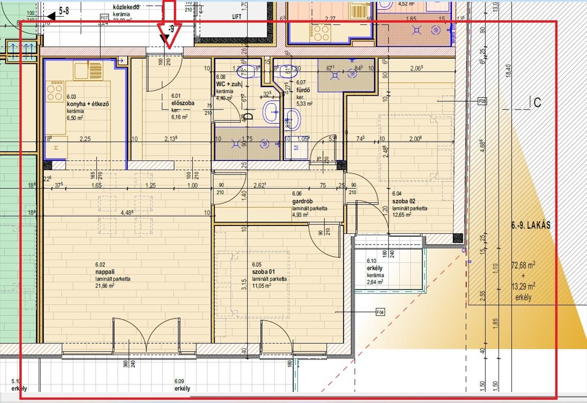 A lakás 72, 68 m2, az erkély 13, 29 m2. Könnyen két lakássá alakítható!