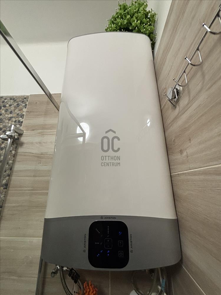 A meleg vizet a fürdőszobában egy 70 literes okosbojler, a konyhában külön tárolós vízmelegítő biztosítja.