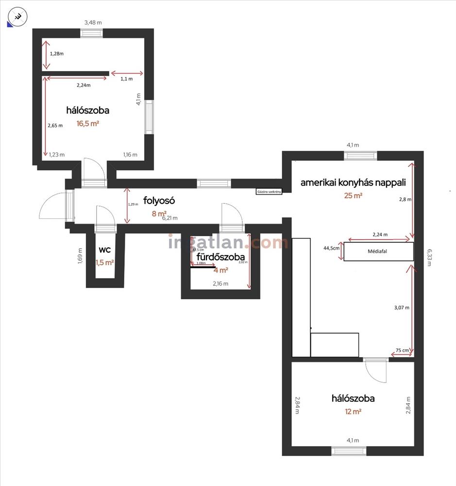 Eladó 66 m²-es, teljesen felújított lakás udvari beállóval és saját használatú tárolóvalFrissen, teljeskörűen felújított, 66 m²-es, igényes lakás, amely két külön nyíló hálószobával és egy tágas amerikai konyhás nappalival rendelkezik.