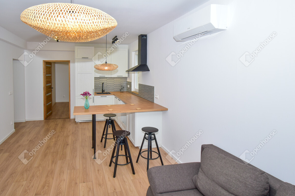 vadonatúj, modern, ízlésesen kialakított fürdőszoba és konyha