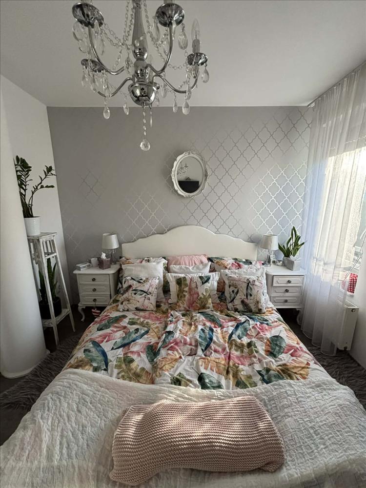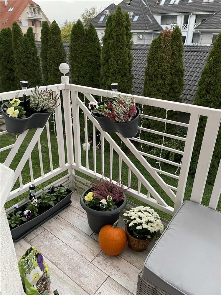 A lakás csendes, a hátsó kertre néz. Az erkélyen (6, 68 nm ) új árnyékoló került felszerelésre.