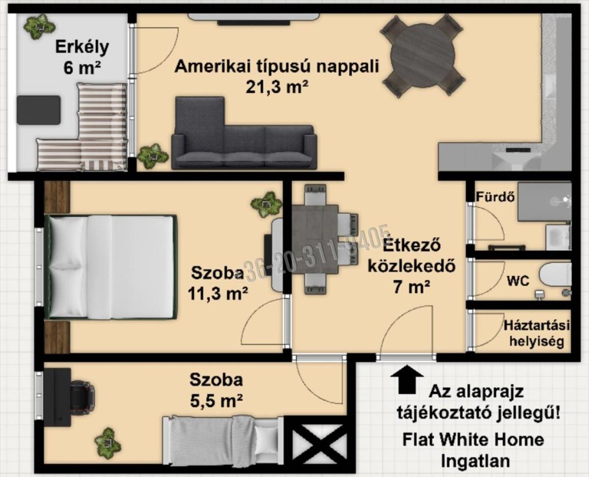 Az amerikai konyhás nappali mellett egy teljes értékű hálószoba és egy félszoba kapott helyet. a konyha kialakítása az új tulajdonos ízlésére vár. a fürdő és a wc külön nyílik, a praktikus háztartási helyiség pedig a mindennapokat teszi könnyebbé. a lakáshoz egy 6 m²-es, tágas lodzsa is tartozik, amely a csendes udvarra néz.