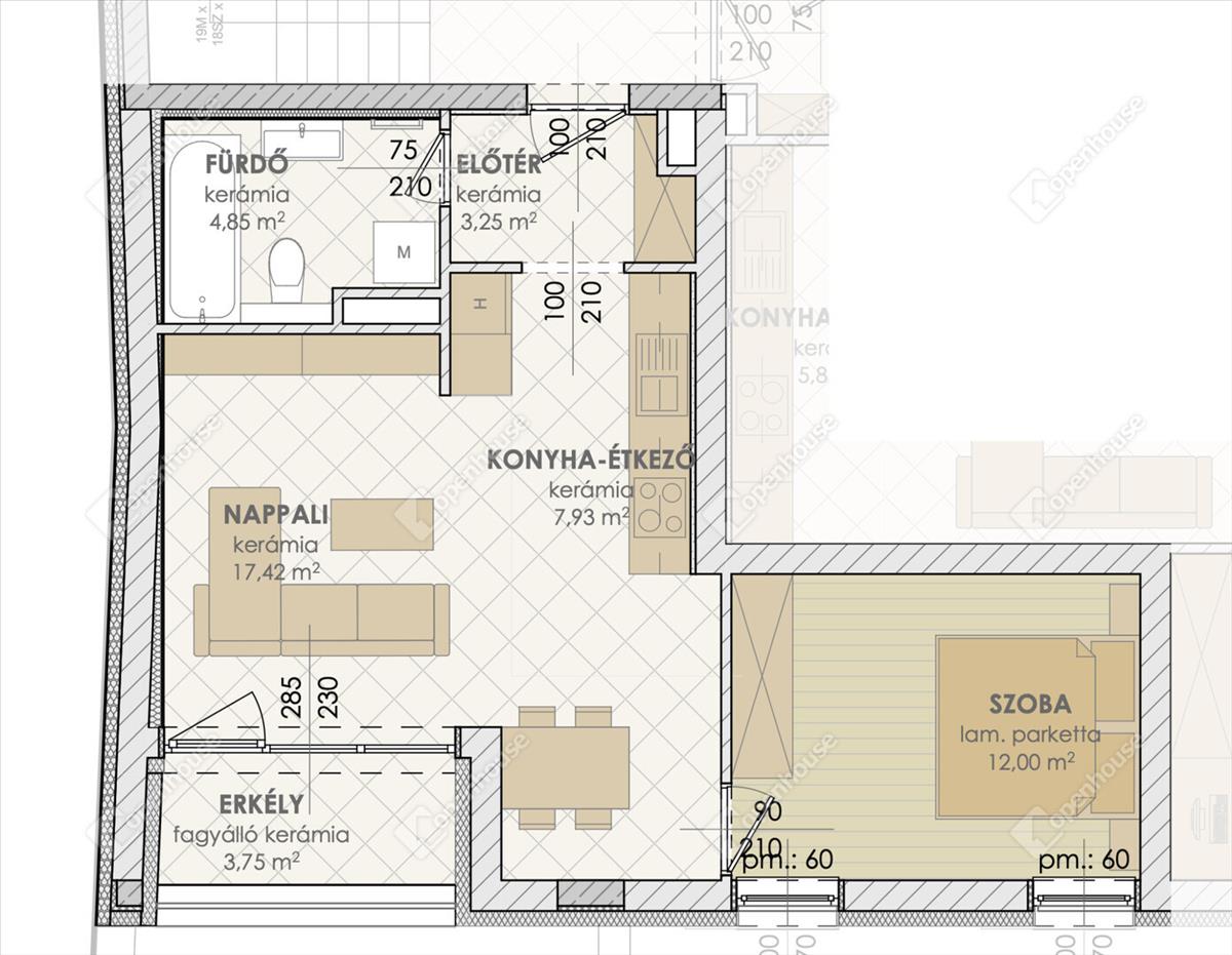 Hirdetésben szereplő B24-es lakás nettó 45. 45 m2, hozzá tartozó fedett erkély 3. 75 m2. Nappali-konyha-étkező, egy hálószoba, fürdőszoba + wc elosztású.