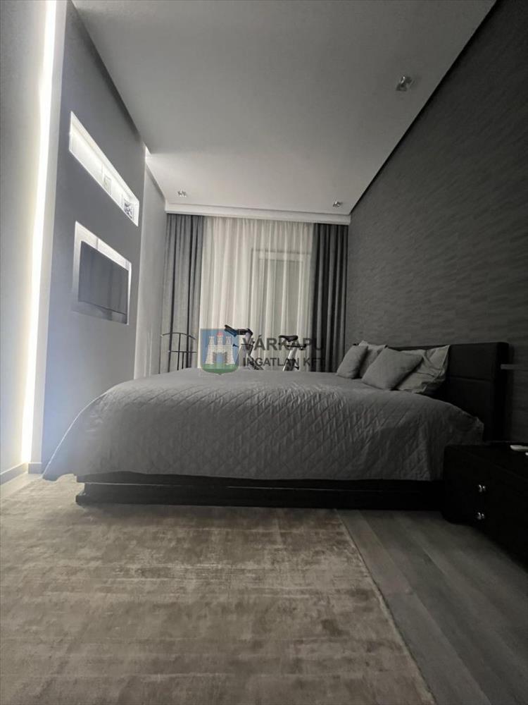 A két hálószobában a plafon dekor led világítást kapott spot világítással, valamint szoba közepében helyezkedik el a tv kiállás: mind upc, mind Digi, mind T-Home elő vezetékeléssel. Mindkettő hálószobában figyeltünk a francia ágyak melletti konnektor és plafon kapcsolók kiépítésére, valamint a falikarok, vagy dekor függő olvasólámpák kiépítésére.