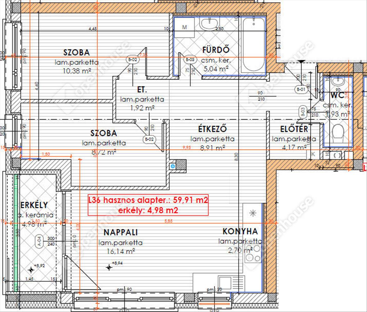 nettó 59, 91 m2-es lakás + 4, 98 m2-es fedett erkély