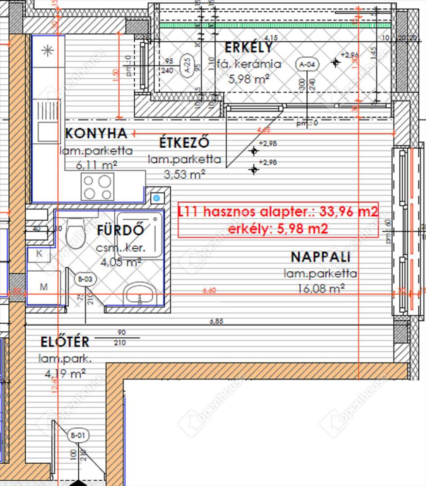 nettó 33, 96 m2-es lakás + 5, 98 m2-es fedett erkély