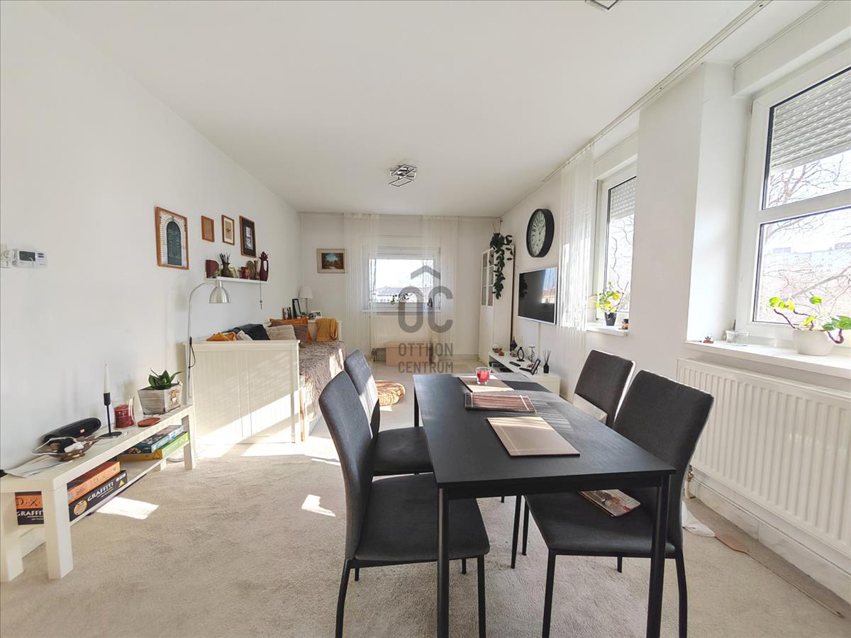 Belváros közelében, rendezett, négyszintes társasház harmadik emeletén kínálunk megvételre egy 63 m²-es, amerikai konyhás nappali + 2 hálószobás, délkeleti tájolású, egyedi cirkófűtéses, kedvező fenntartású téglalakást.