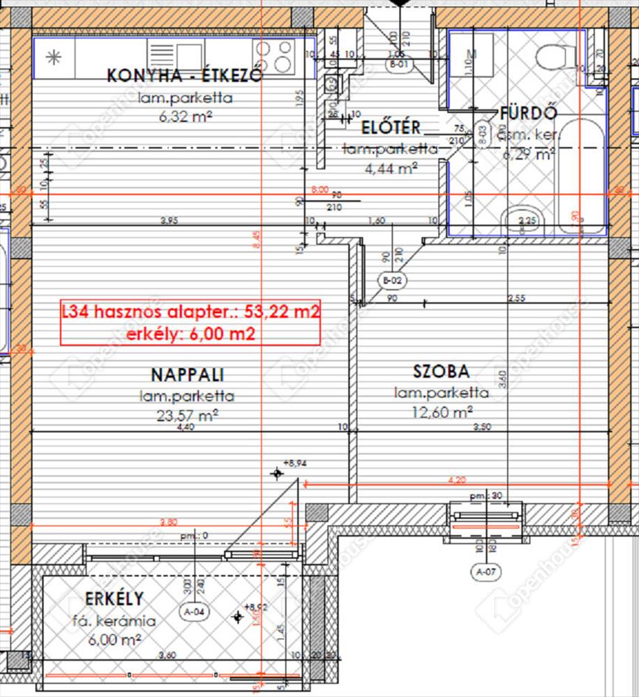 nettó 53, 22 m2-es lakás + 6, 00 m2-es fedett erkély