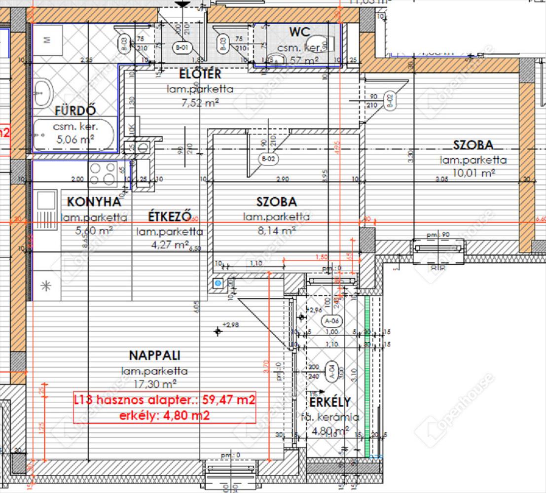 nettó 59, 47 m2-es lakás + 4, 8 m2-es fedett erkély