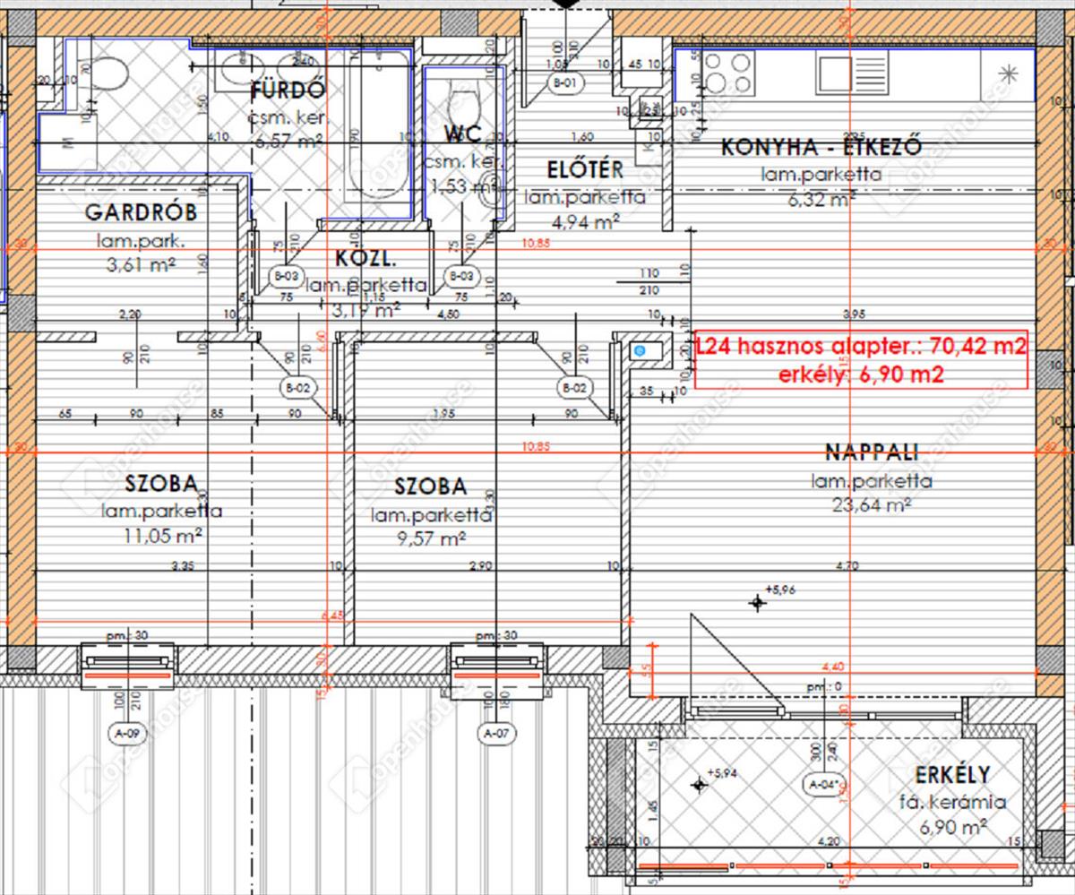 nettó 70, 42 m2-es lakás + 6, 90 m2-es fedett erkély