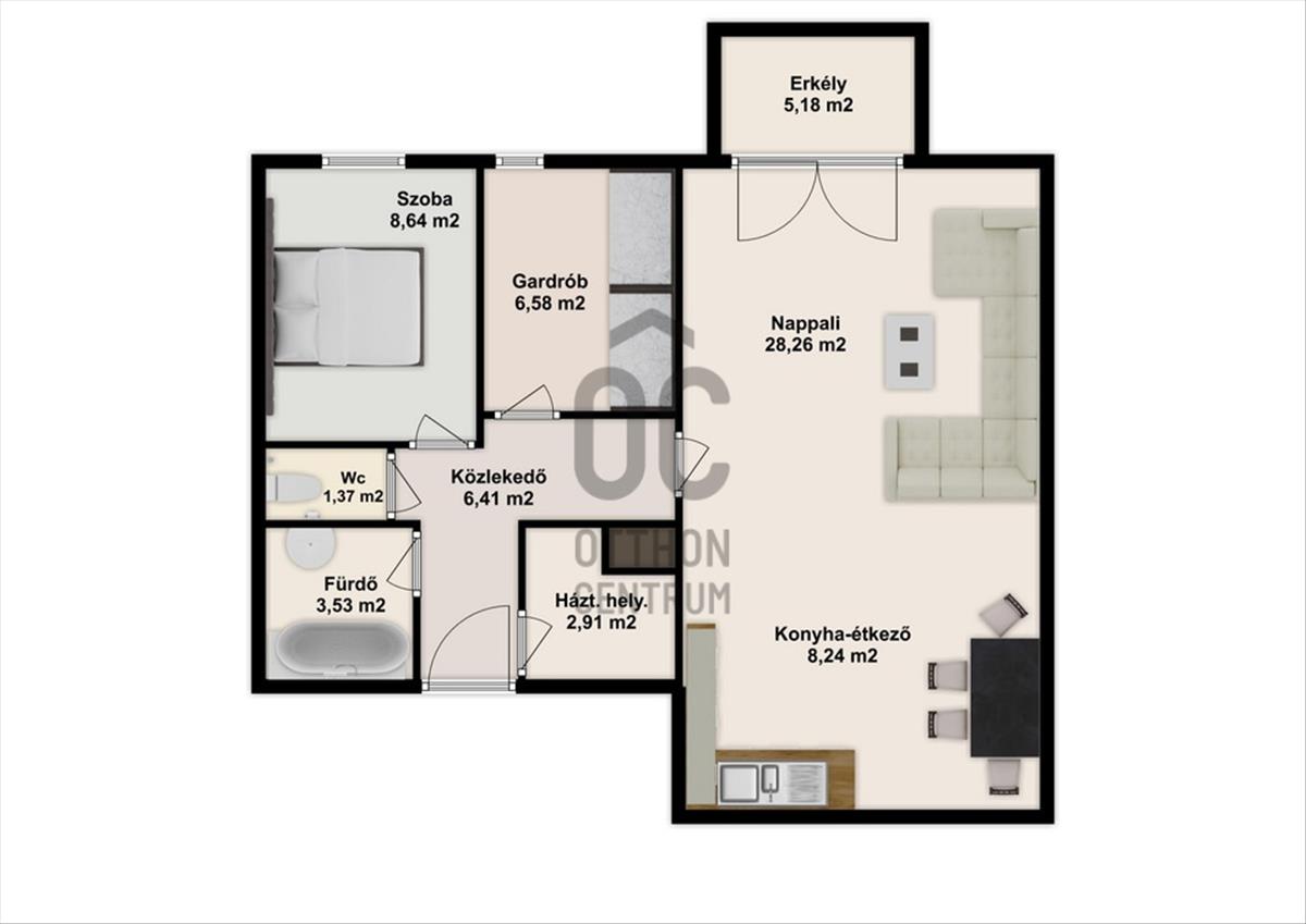 A hirdetésben szereplő lakás 66 négyzetméter lakótérrel rendelkezik, amelyhez kapcsolódik egy 5 négyzetméter alapterületű erkély. a lakás magába foglal többek között egy kényelmes méretű nappali-étkező-konyhát, egy gardróbhelyiséget, hálószobát, fürdőszobát.