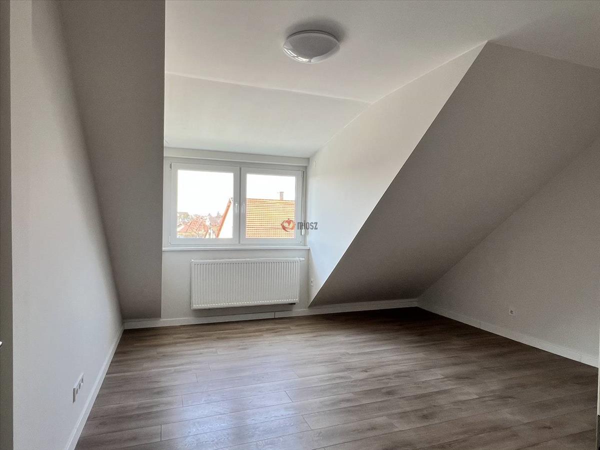 A tetőtéri lakás bejáratához egy külső lépcsőn jutunk fel. Az ingatlan mérete bruttó 104 (nettó 88) m2. Elrendezése amerikai konyhás nappali + 3 hálószoba, fürdőszoba, közlekedő, kamra. a fürdőszoba járólappal, a lakás többi része laminált padlóval burkolt.