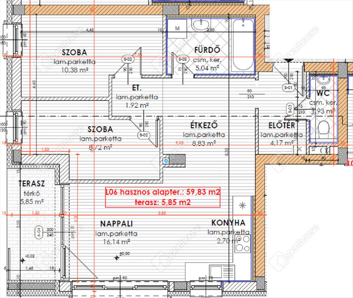 nettó 59, 83 m2-es lakás + 5, 85 m2-es fedett erkély
