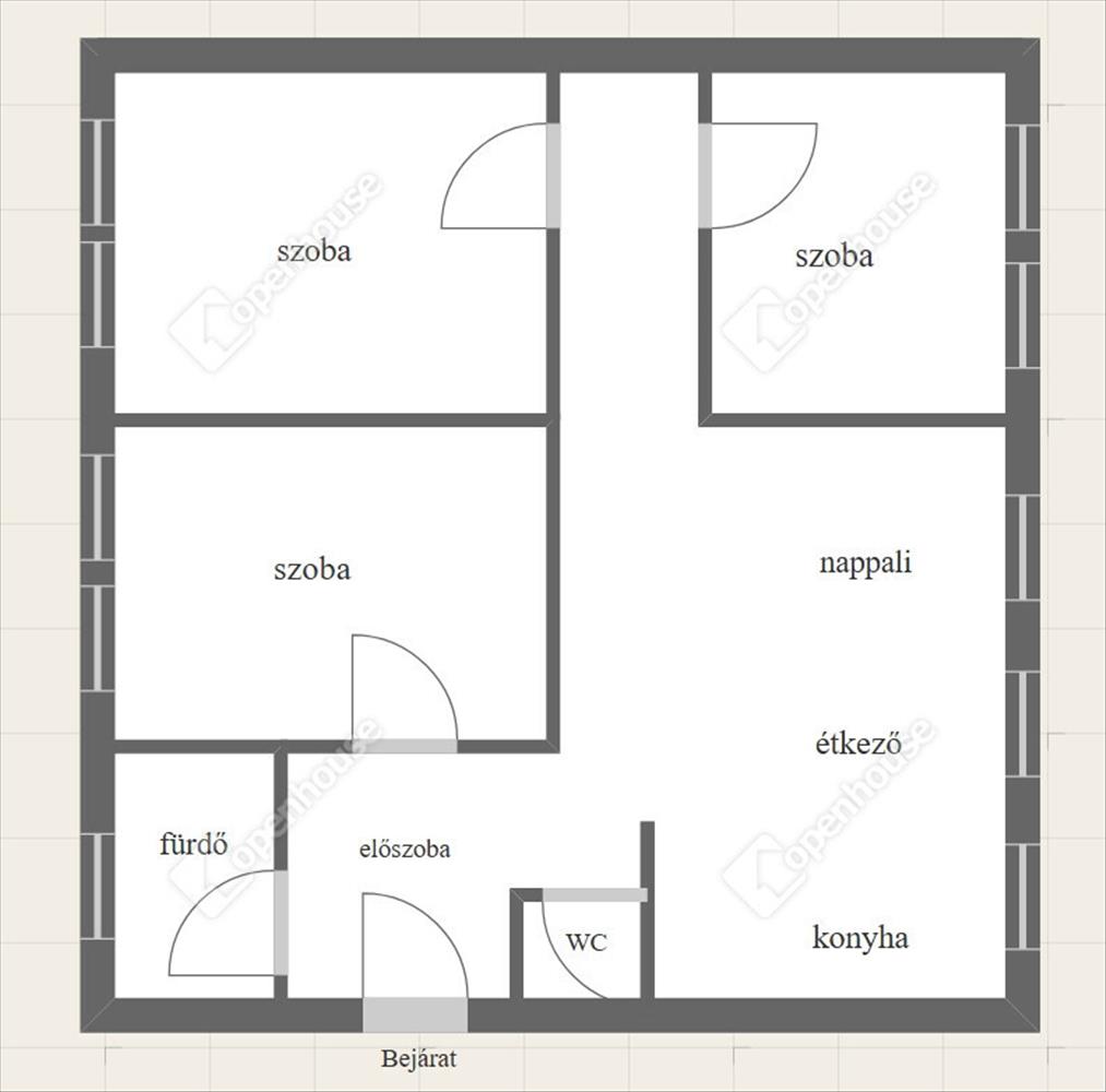 - Nappali + 3 szoba + konyha + étkező+ fürdőszoba és külön wc található a lakásban.