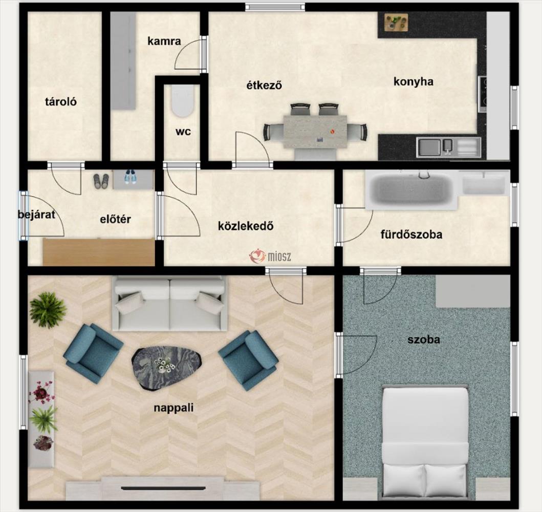 Az ingatlan eredetileg 62 m²-es volt, amelyhez hozzáépítésre került egy előszoba és egy kisebb kamra, így a teljes alapterület 67 m².