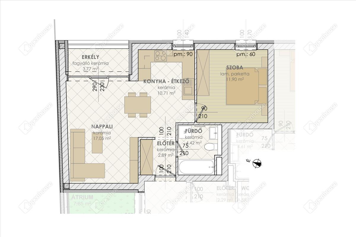 Hirdetésben szereplő B11-es lakás nettó 46. 97 m2, hozzá tartozó fedett erkély 3. 77 m2. Nappali-konyha-étkező, egy hálószoba, fürdőszoba, elosztású.