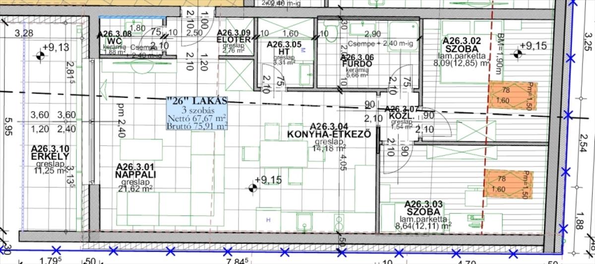 A26 lakás: 67, 67 m2|konyha + étkező - nappali, 2 hálószoba, előtér, fürdő + wc, vendég wc, 11, 25 m2 erkély Eladási ár: 117. 272. 000 Ft