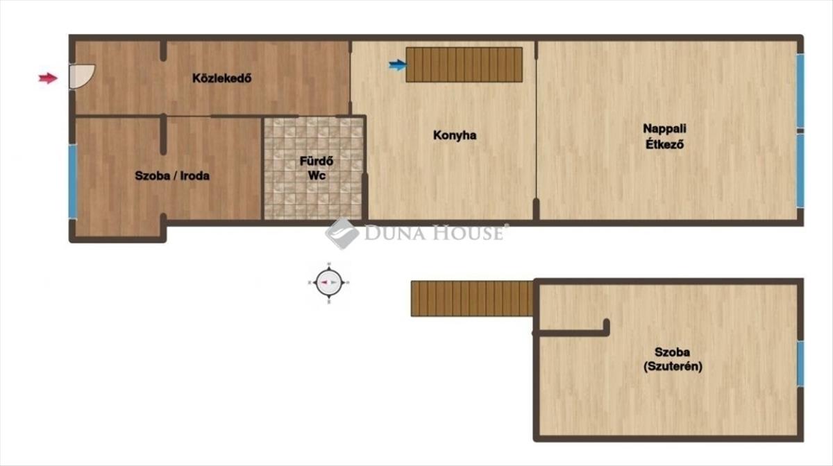 - Helyiségei: Közlekedő, szoba, nappali-étkező, konyha, fürdő-wc és egy lakótérnek kialakított szuterén helyiség, mely irodának vagy üzleti tevékenységre is alkalmas.