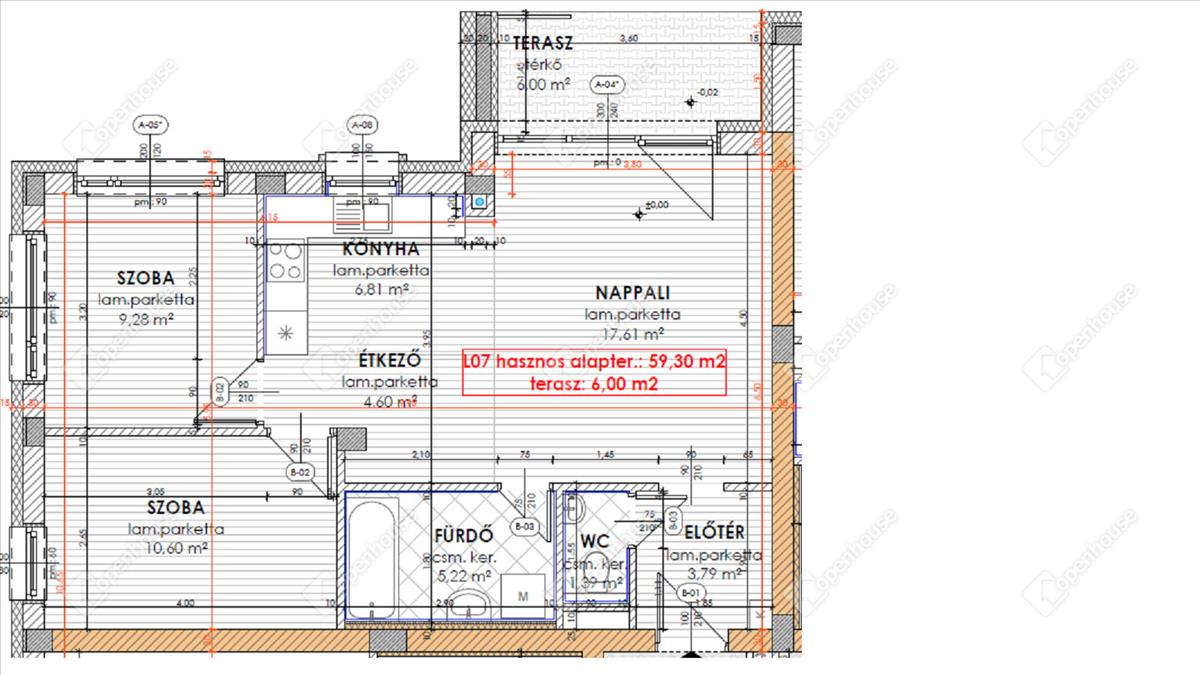 nettó 59, 30 m2-es lakás + 6, 00 m2-es fedett erkély