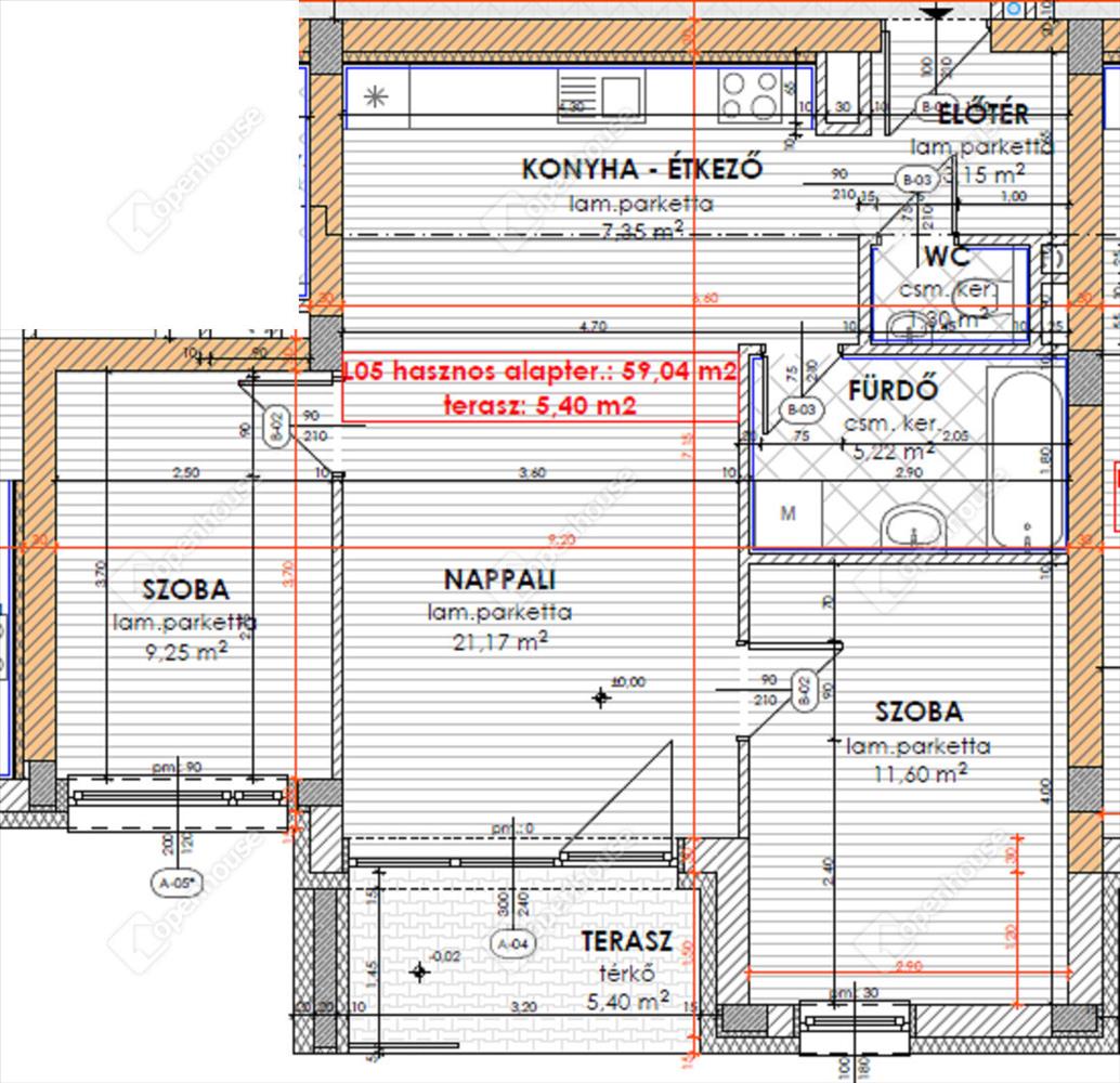 nettó 59, 04 m2-es lakás + 5, 4 m2-es fedett erkély