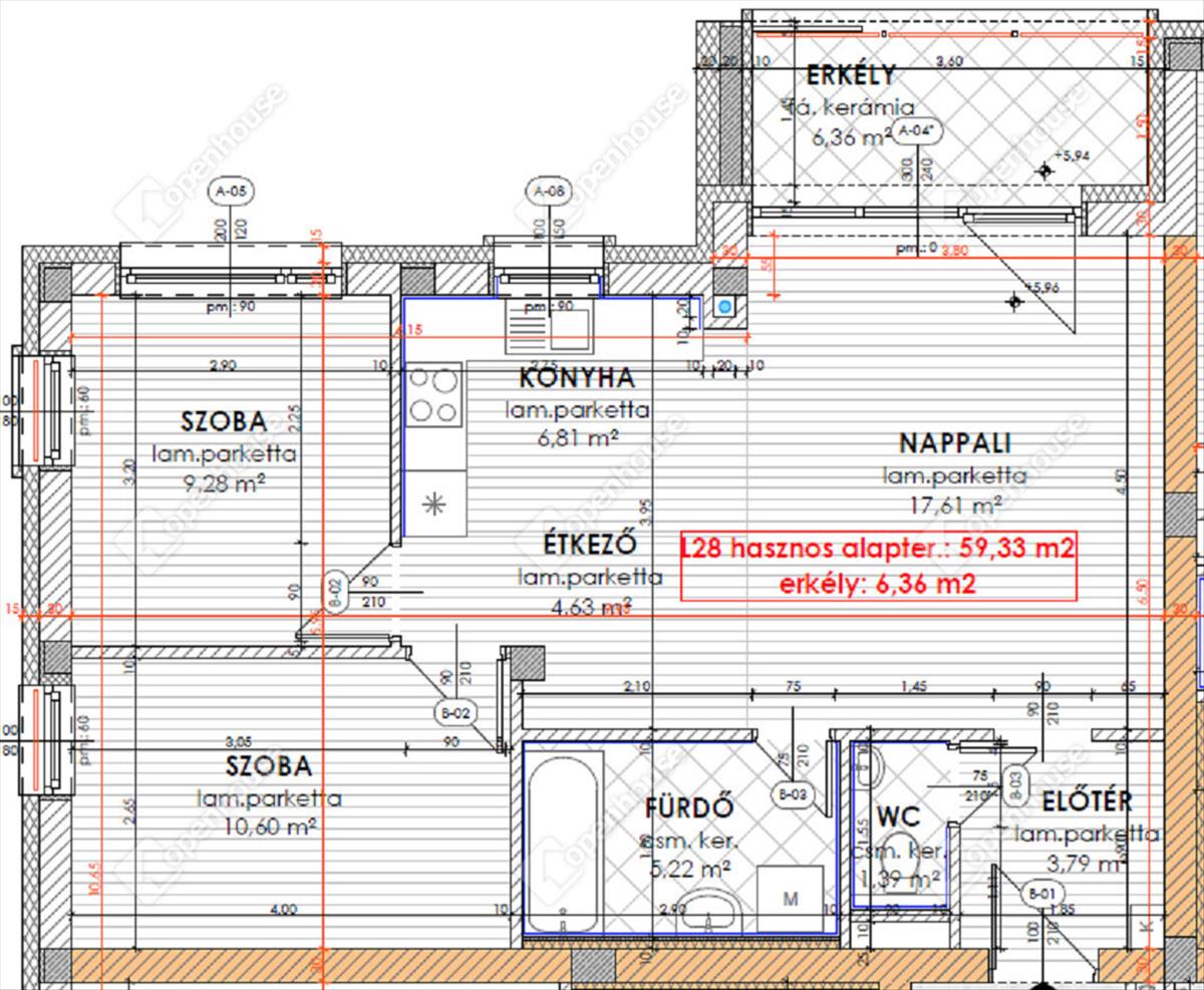 nettó 59, 33 m2-es lakás + 6, 36 m2-es fedett erkély