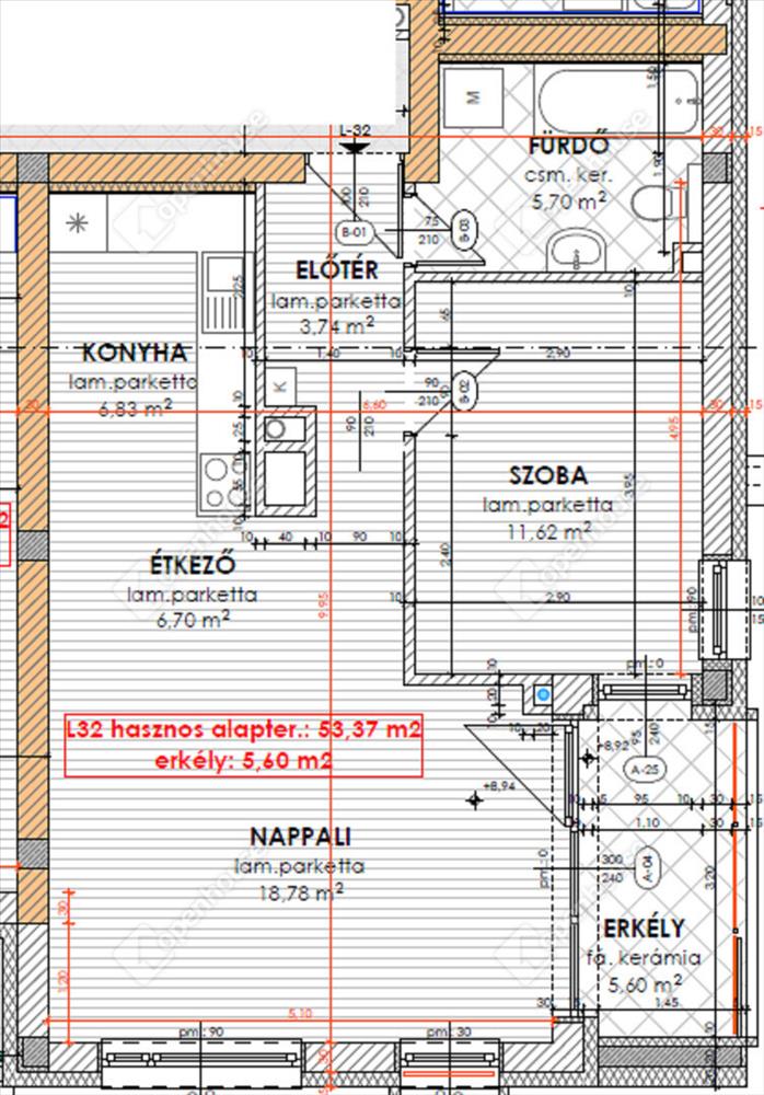 nettó 53, 37 m2-es lakás +5, 60 m2-es fedett erkély