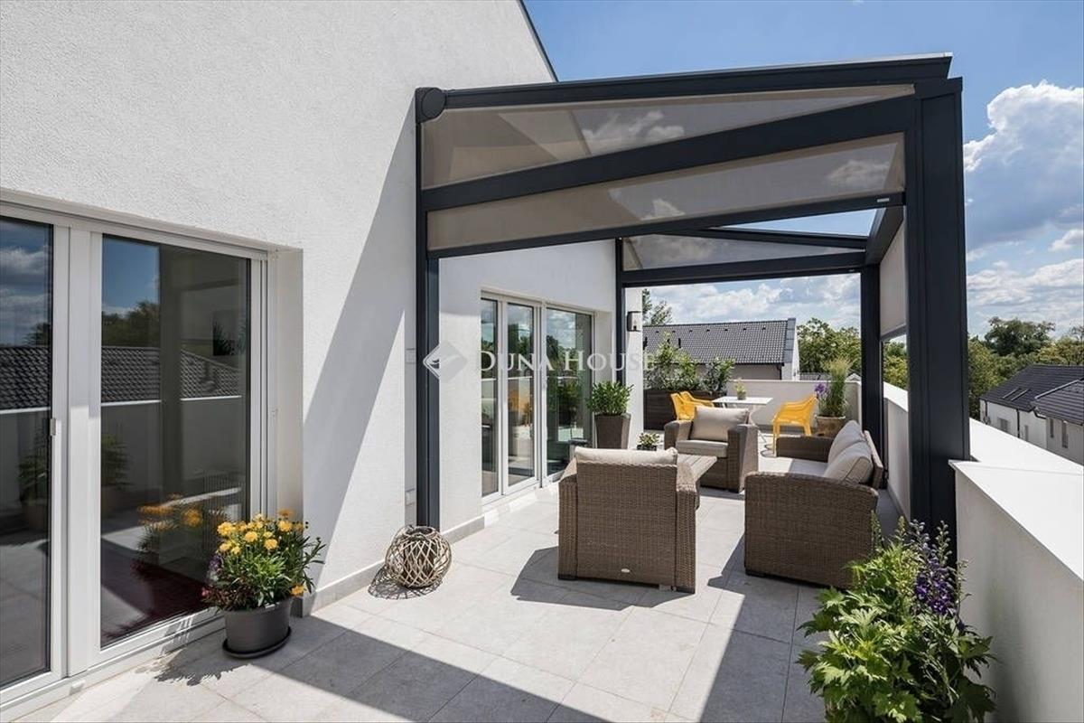Szentendrén a Barackvirág lakóparkban eladó egy 112 m2-es prémium penthouse lakás 110 m2-es részben fedett terasszal! Kocsibeállóval! Kuriózum! Egyedülálló a piacon! Kizárólag irodánk kínálatában! Szentendrén a Barackvirág utcában eladó egy 2020-ban épült 7 lakásos társasház 2. emeletén lévő 112 m2-es penthouse lakás + 110 m2-es terasszal. Az ingatlan az alábbi helyiségekből áll: nappali-ebédlő-konyha, 3 szoba 2 fürőszoba + wc, előszoba, közlekedő, hatalmas 110 m2-es terasz! Az épület melynek tetején ékszerdobozként ül ez a lakás igényes és minőségi anyagokból épült. Az ingatlan gondosan válogatott Revoir, Paris hideg és Kaindl meleg-burkolatokkal, összesen 224 m2 alapterülettel várja új tulajdonosát. a 112 m2-es terasz kiváló lehetőséget nyújt azoknak, akik szeretnek kertészkedni, vagy grill partit rendezni. a vihar és forró napsütés ellen is védelmet nyújtó belga, Renson Lagune távirányítós motoros pergola, 4000*3000*3250mm-es méretben. Az ingatlanhoz tartoziik 2 db kocsibeálló + 10. 000. 000, - Ft-ért! További információért hívjon! Hitel.hu - Hasonlítsa össze a bankok lakáshitel ajánlatait