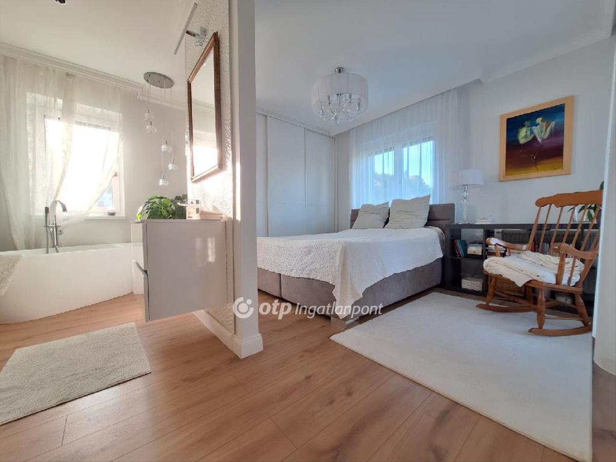 A belső tér különlegessége, hogy a hálószobában helyet kapott egy exkluzív fürdőkád, emellett egy külön fürdőszoba is rendelkezésre áll zuhanyzóval.