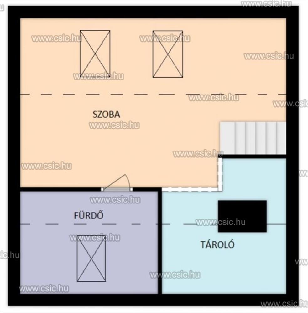 •emeleti szinten: nappaliból belső lépcsőn: galéria (szoba), gardrób, mosdó-wc (zuhany)